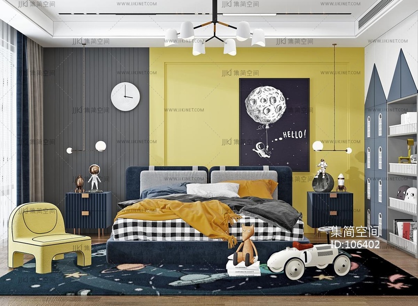 07-现代儿童房,儿童床学习桌-3d模型下载