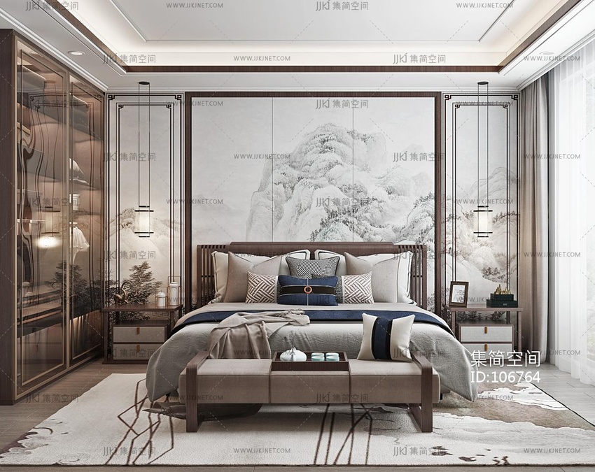 中式家居卧室 3d模型下载 [模型ID:106764]