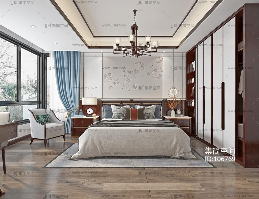 新中式卧室主人房 3d模型下载 [模型ID:106769]