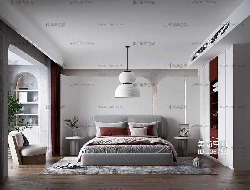 现代简约卧室 3d模型下载 [模型ID:106783]