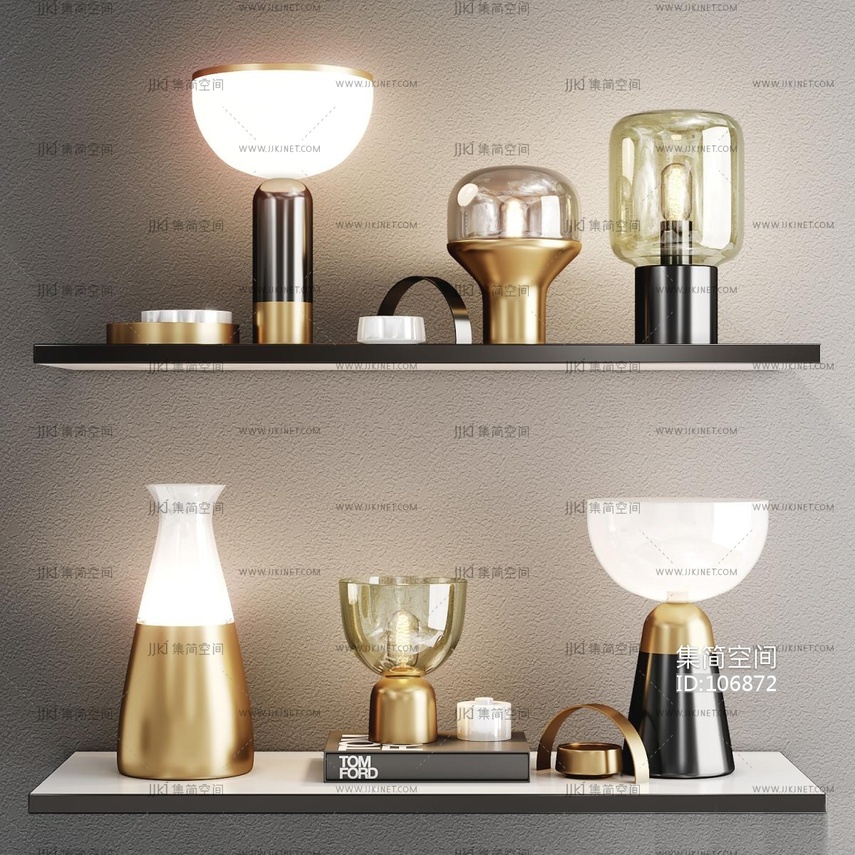 现代轻奢玻璃金属台灯组合 3d模型下载 [模型ID:106872]