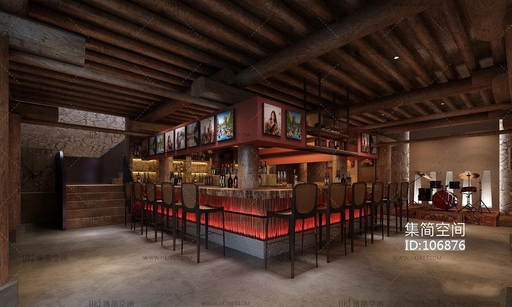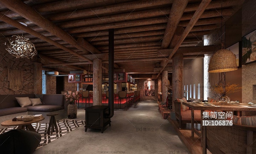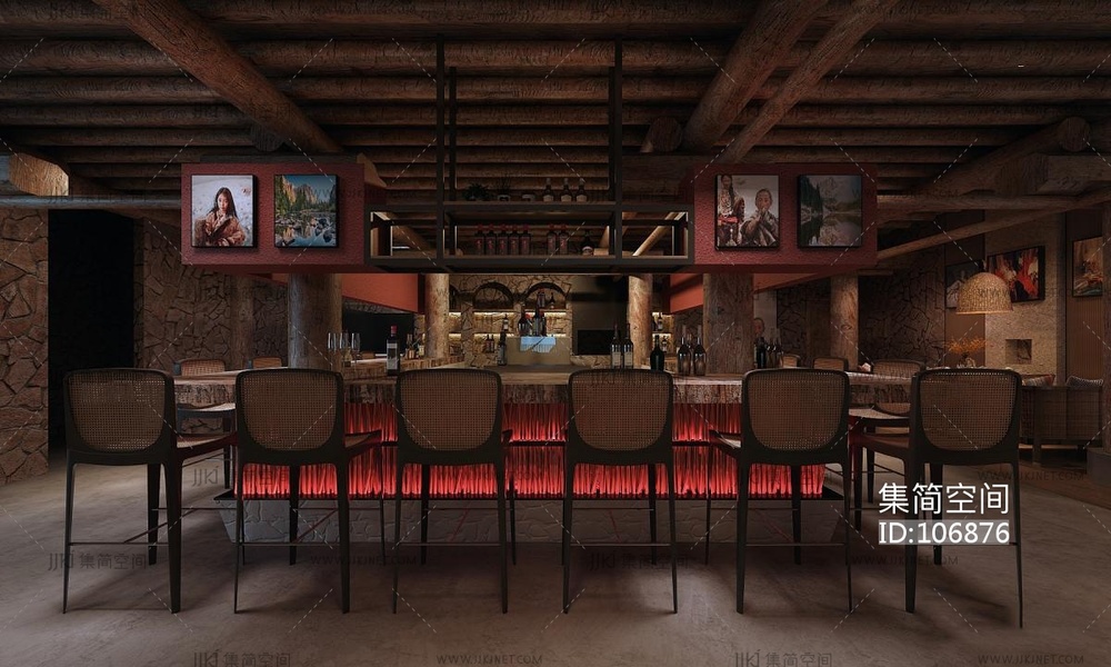 藏式风格酒店餐厅 3d模型下载 [模型ID:106876]
