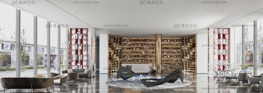 新中式售楼处入口大堂服务太接待台3D模型3d模型下载