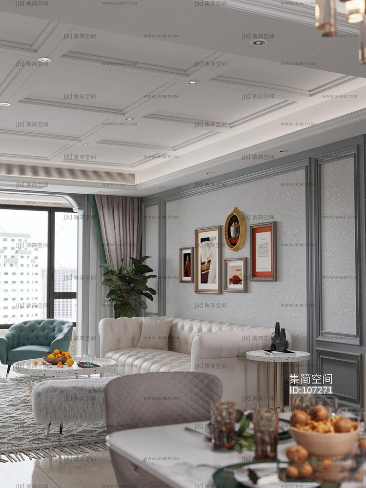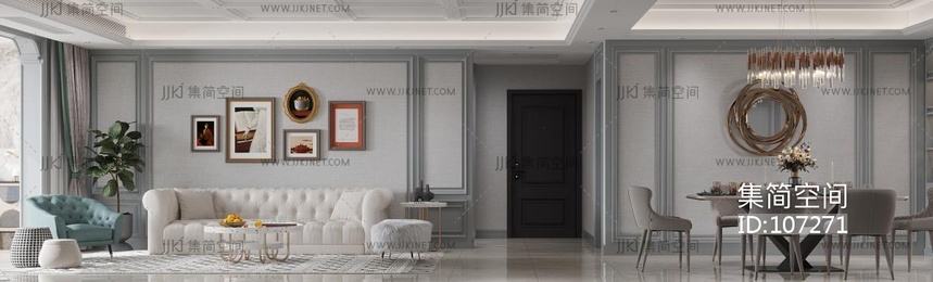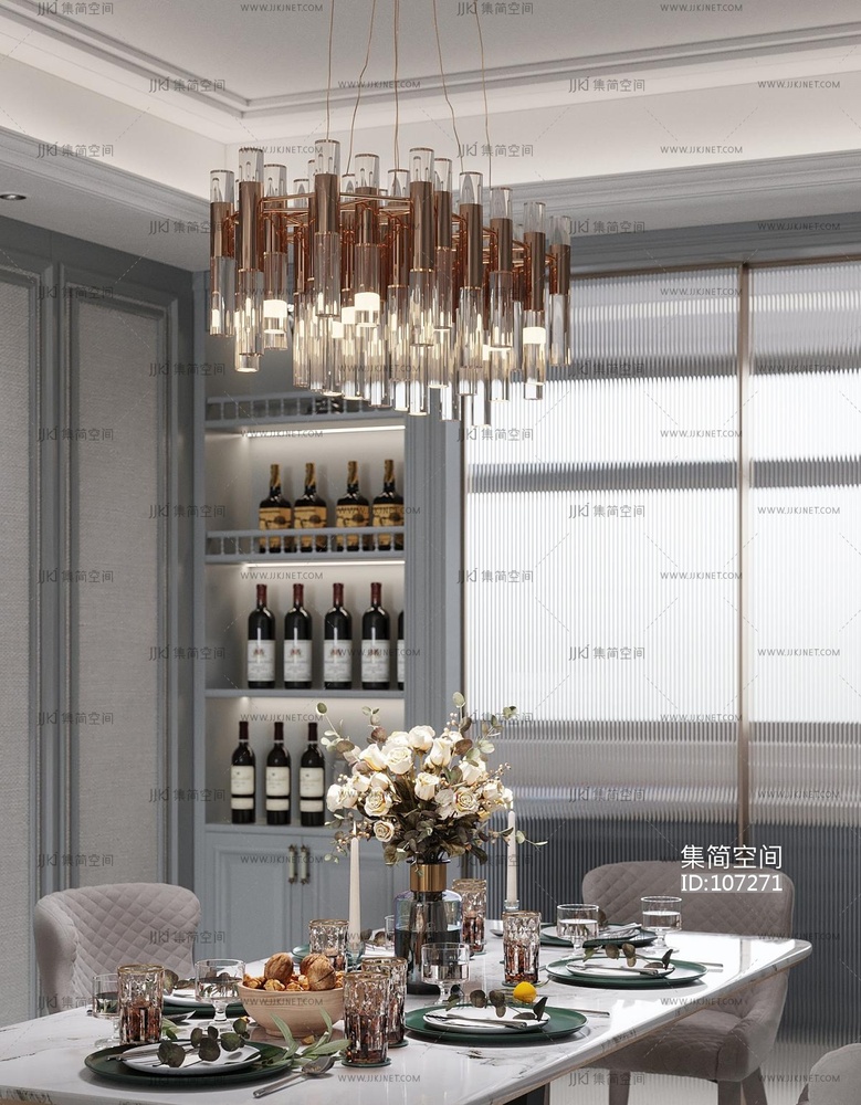 美式轻奢客餐厅 3d模型下载 [模型ID:107271]