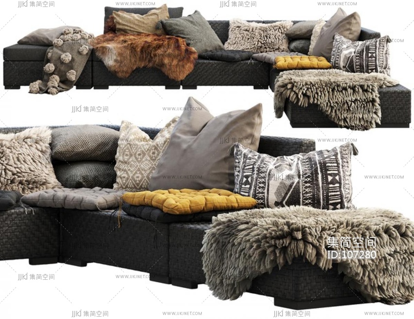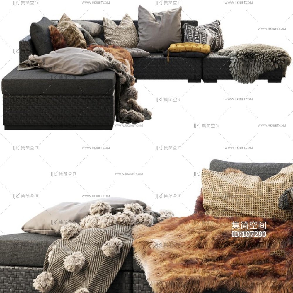 棕色 Jordan 4M 户外柳条组合沙发 3d模型下载 [模型ID:107280]