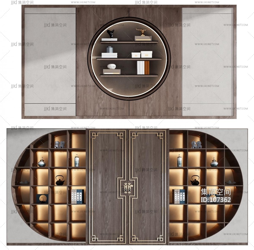 新中式背景装饰柜门组合 3d模型下载 [模型ID:107362]