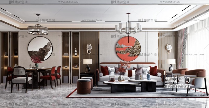 新中式客餐厅, 3d模型下载 [模型ID:107366]