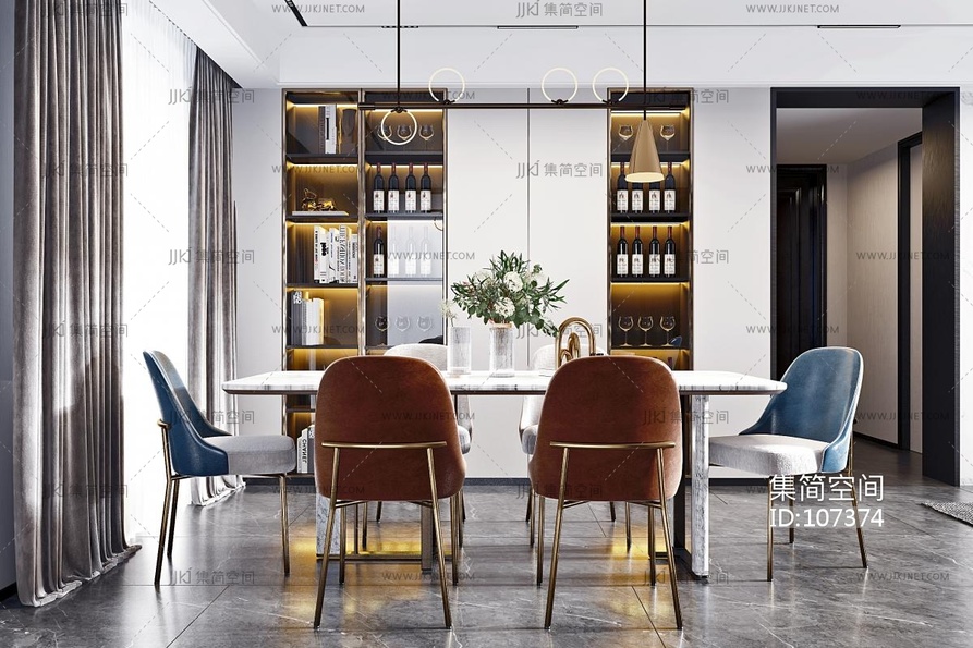 现代轻奢风格餐厅 3d模型下载 [模型ID:107374]