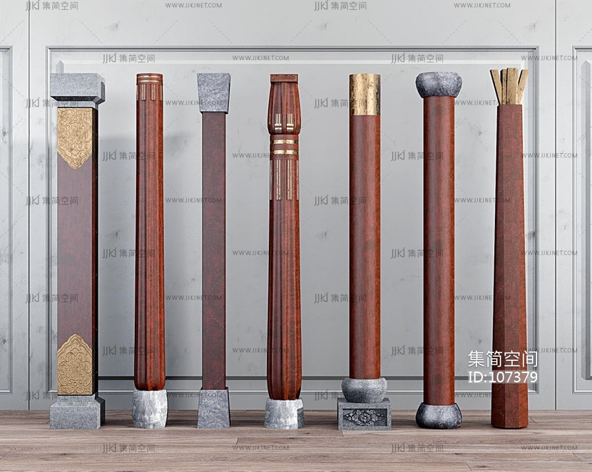 现代装饰柱_柱子中式柱子组合3D模型3d模型下载