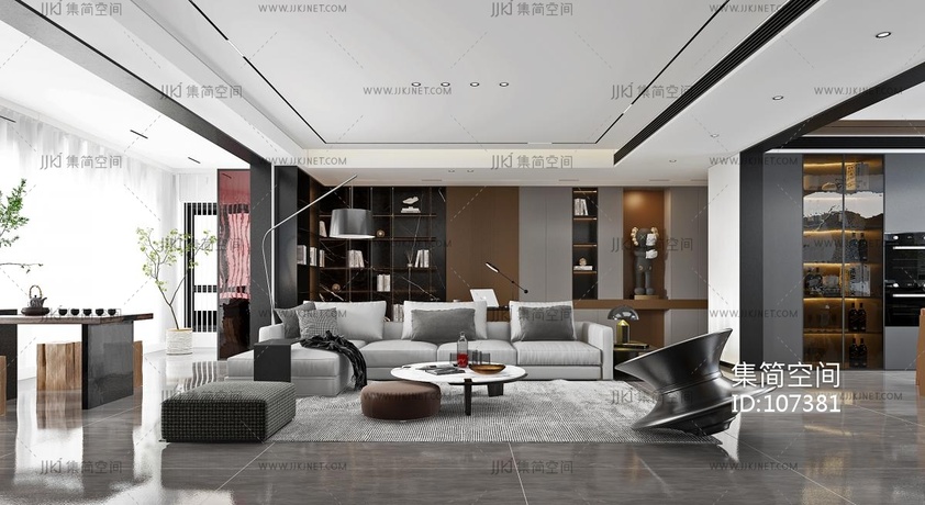 现代酷黑客厅 3d模型下载 [模型ID:107381]
