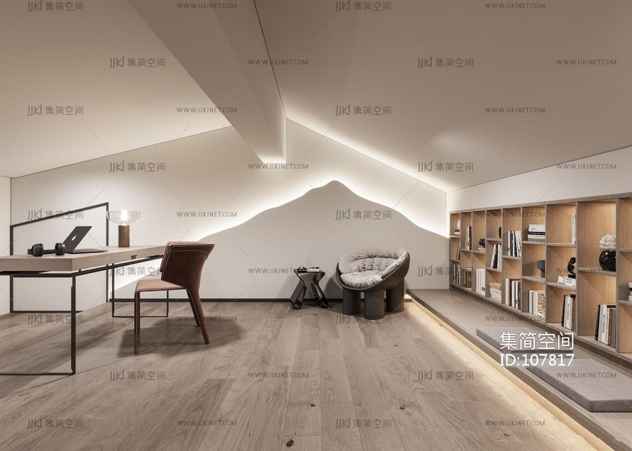 现代书房阁楼 3d模型下载 [模型ID:107817]