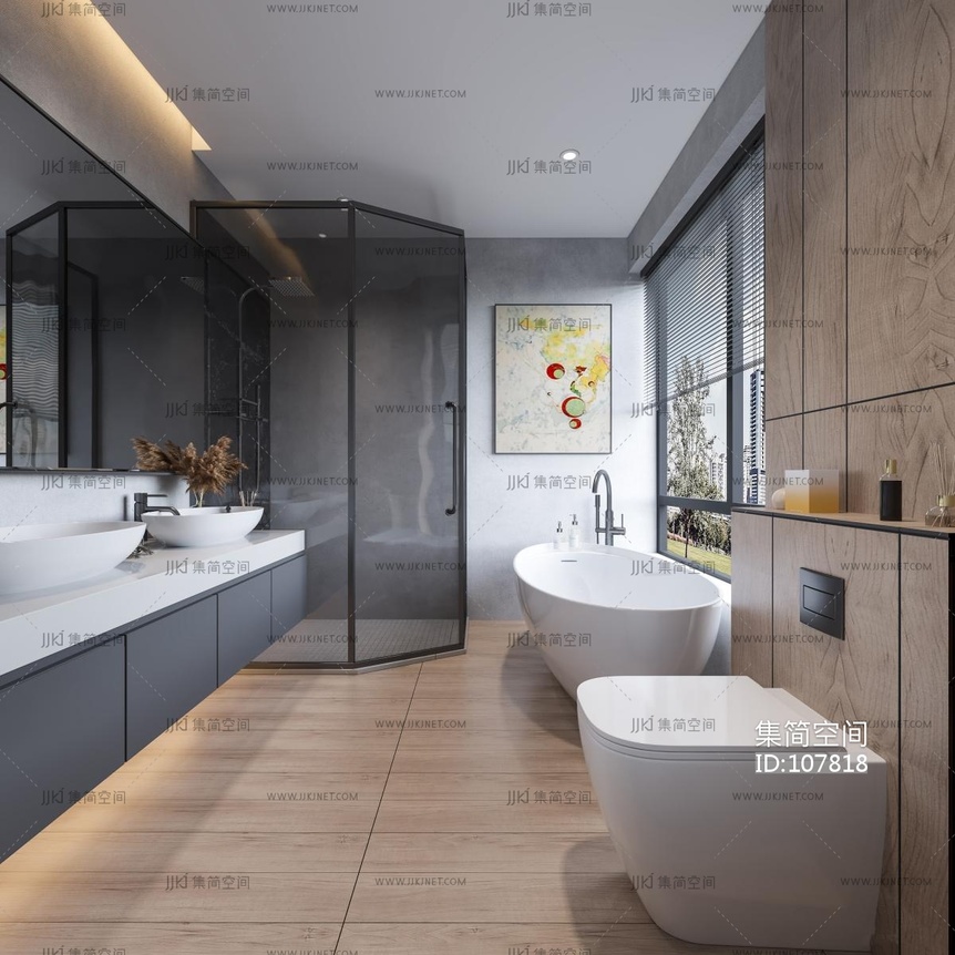 法式奶油风卫生间_洗手盆_马桶抽纸盒花瓶3D模型3d模型下载