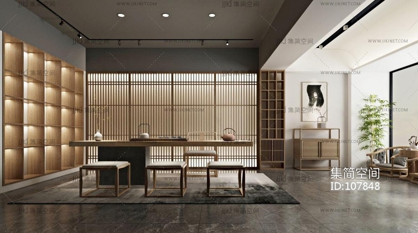新中式轻奢茶室 3d模型下载 [模型ID:107848]
