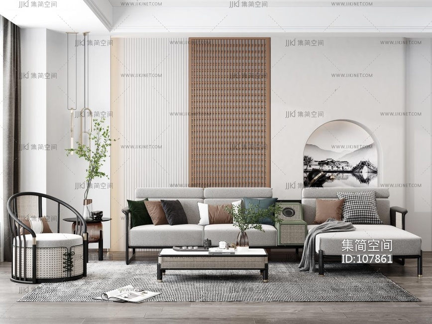 新中式家居客厅 3d模型下载 [模型ID:107861]