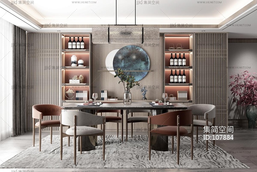 新中式餐厅 3d模型下载 [模型ID:107884]