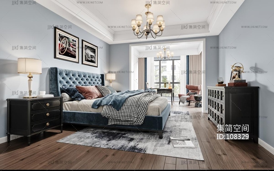 6法式中古家居卧室_主卧_飘窗卧室_高级灰卧室3D模型cr3d模型下载