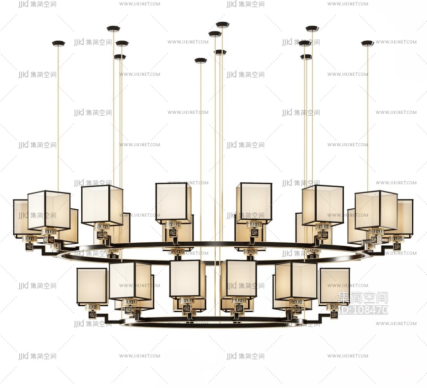 新中式轻奢多头吊灯, 3d模型下载 [模型ID:108470]