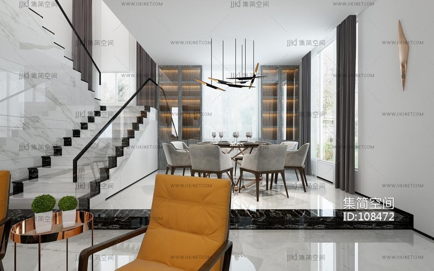 欧式古典餐厅古典雕花餐桌椅 3D模型3d模型下载