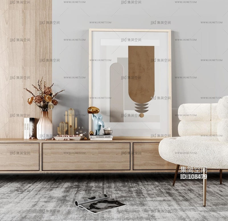 现代新中式雕塑摆件_饰品摆件组合3D模型3d模型下载