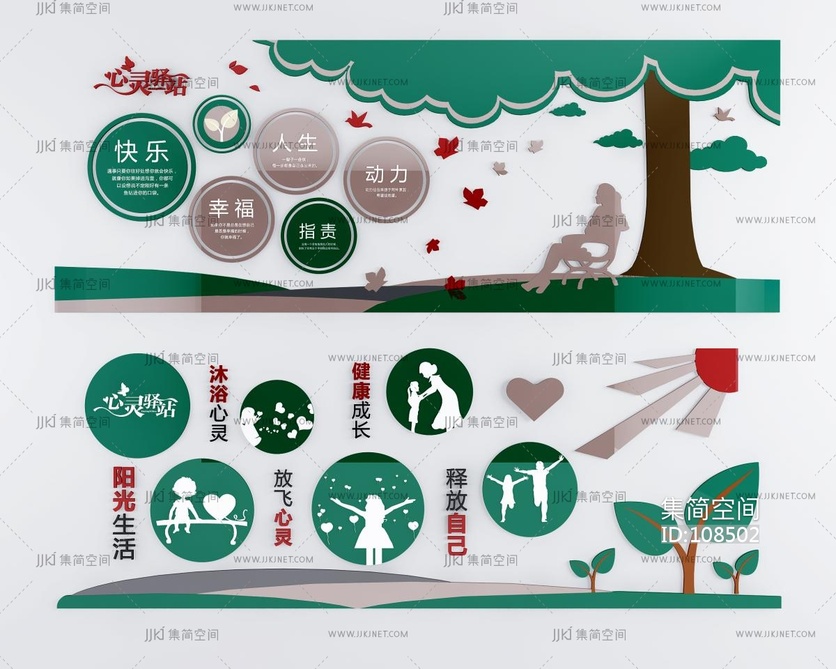 现代心理咨询室文化墙3D模3d模型下载