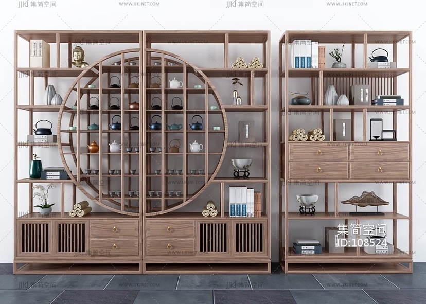 新中式博古架组合 3d模型下载 [模型ID:108524]