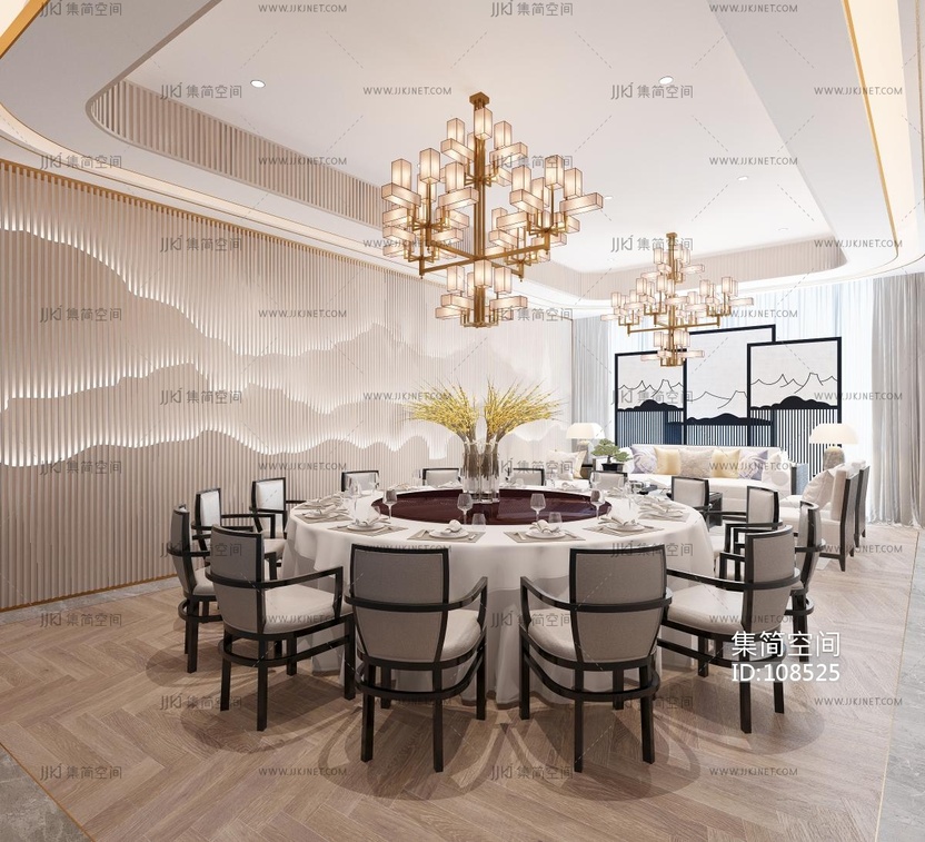 新中式餐厅包厢包间, 3d模型下载 [模型ID:108525]