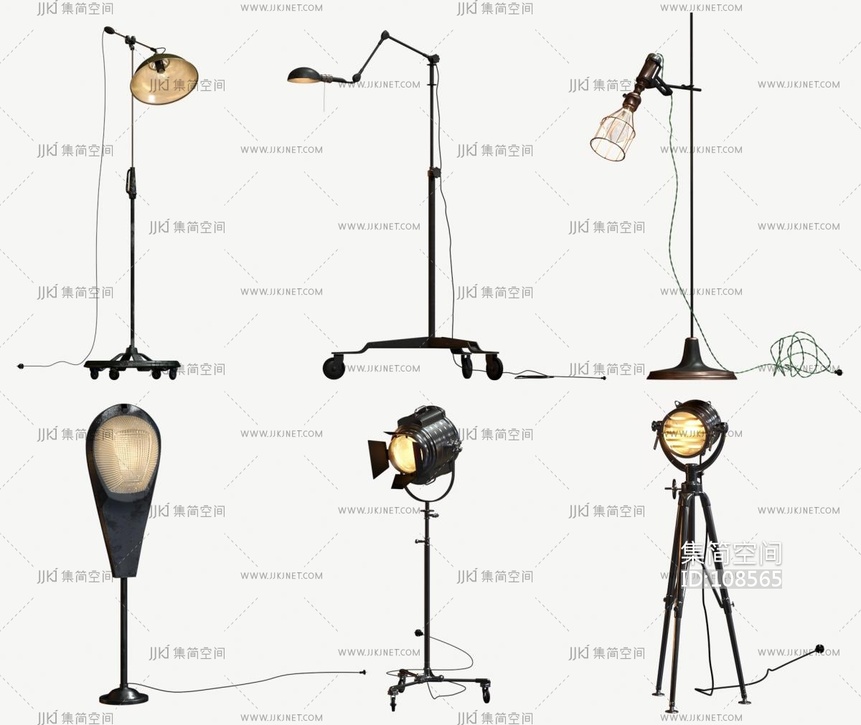 27工业风落地灯 复古灯具 射灯 补光灯 摄影棚灯具 金属灯具 3d模型下载 [模型ID:108565]