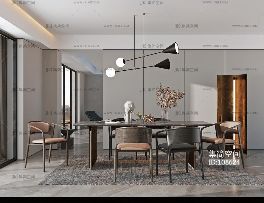 现代极简餐厅 3d模型下载 [模型ID:108624]