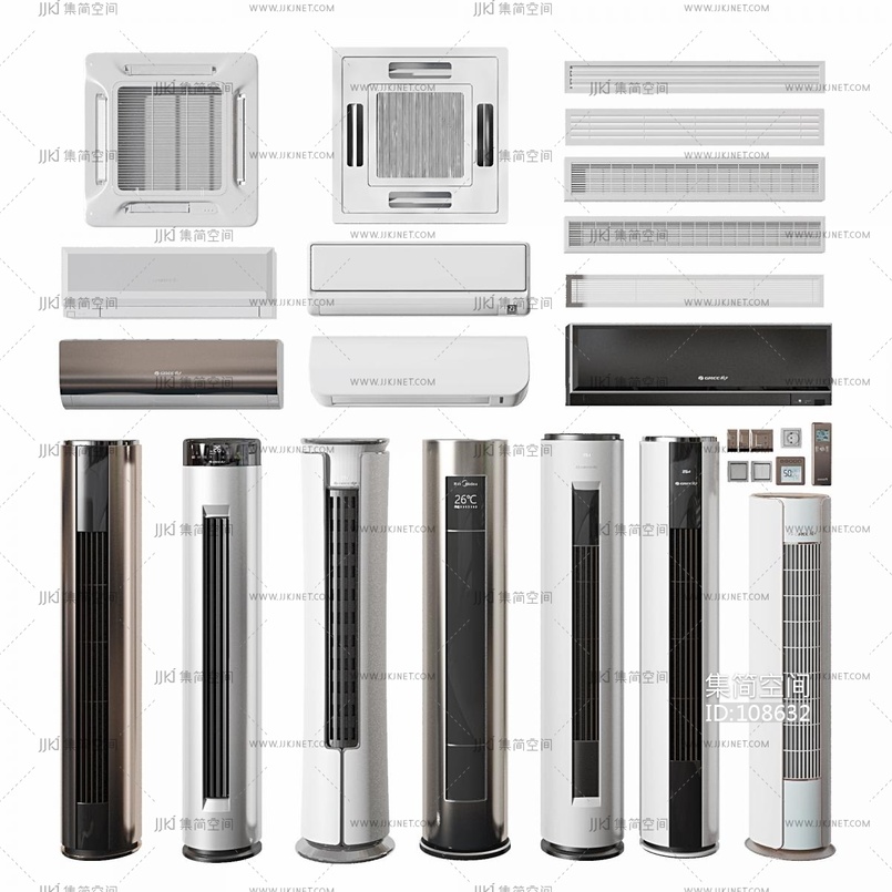 现代壁挂空调,落地空调组合 3d模型下载 [模型ID:108632]