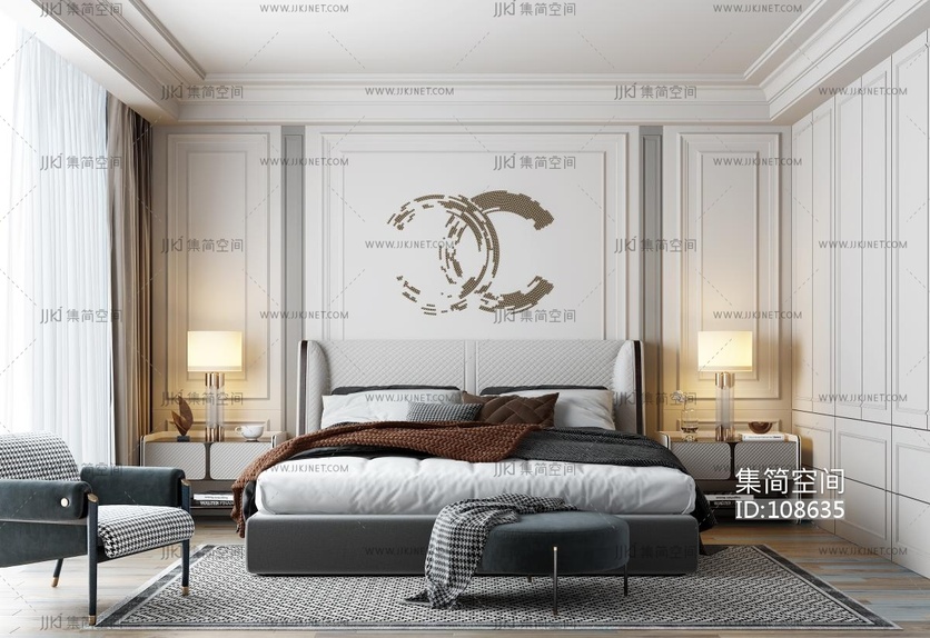 现代美式轻奢卧室 3d模型下载 [模型ID:108635]