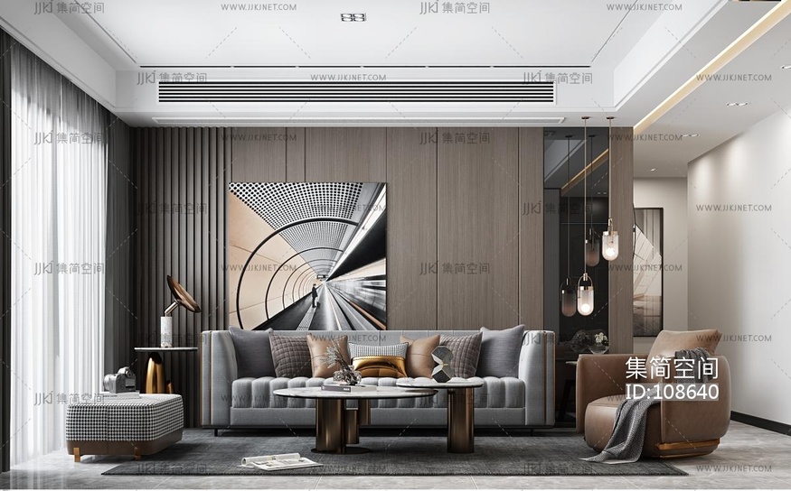 现代轻奢客厅, 3d模型下载 [模型ID:108640]