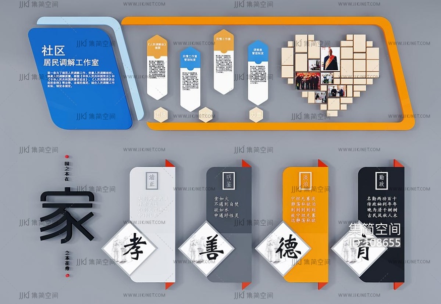 现代社区文化墙_工会权益文化墙3D模型3d模型下载