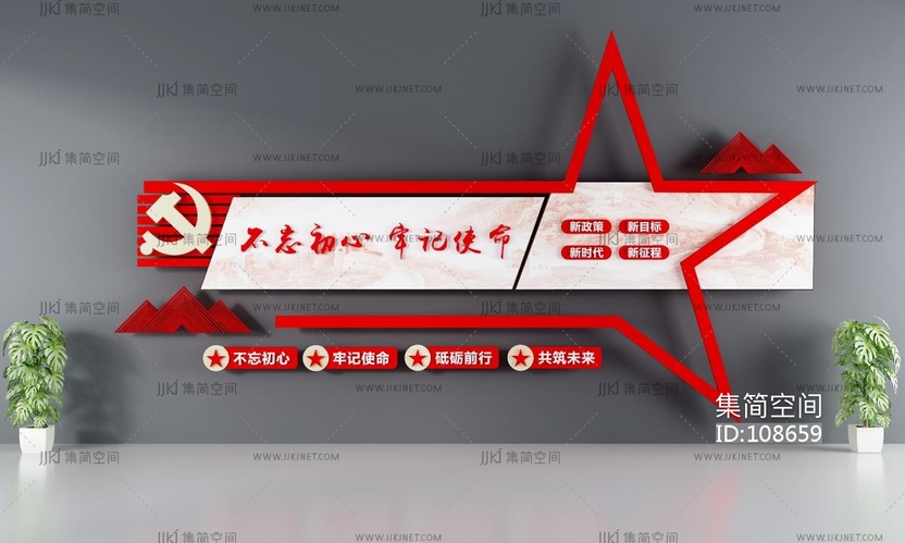 新中式党建文化墙,宣传栏 3d模型下载 [模型ID:108659]