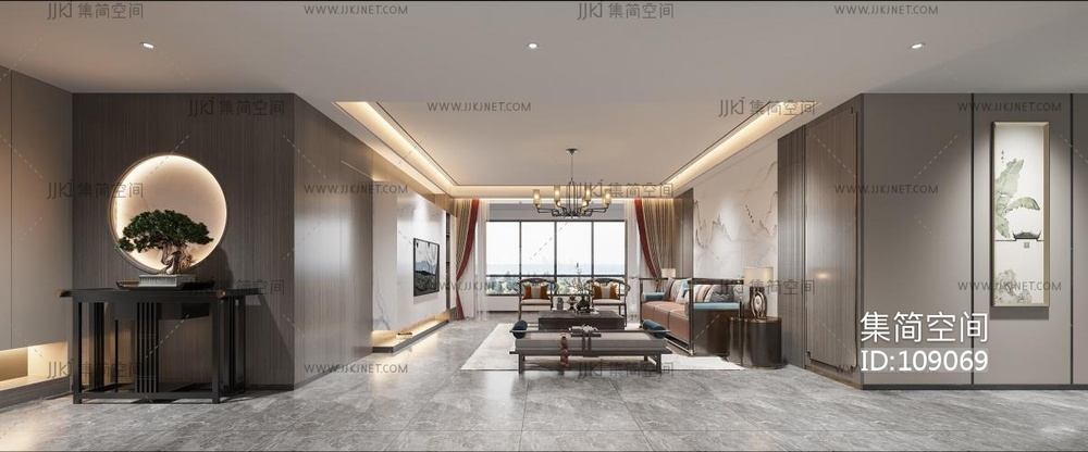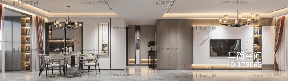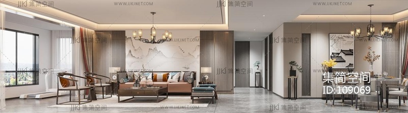 新中式客餐厅 3d模型下载 [模型ID:109069]