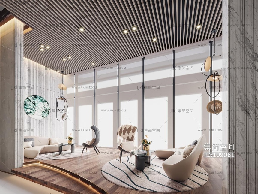 新中式售楼处入口大堂服务太接待台3D模型3d模型下载