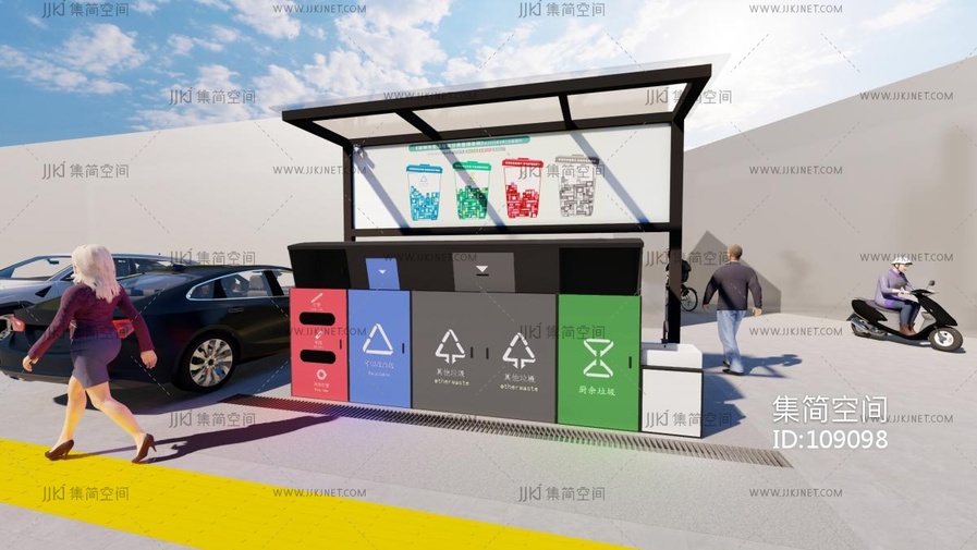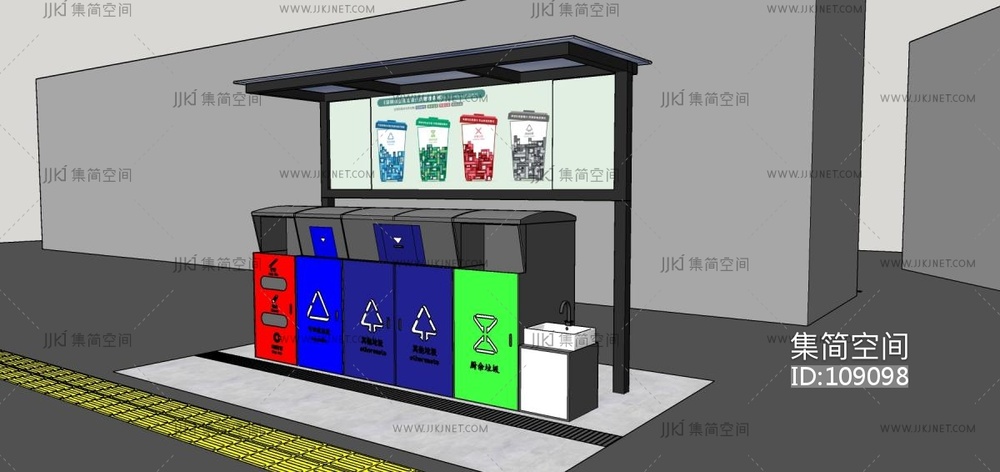 23现代垃圾分类站,垃圾箱 (1) su草图模型下载 [模型ID:109098]