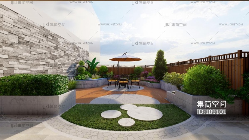 22新中式屋顶花园茶室,遮阳伞 (1) su草图模型下载 [模型ID:109101]