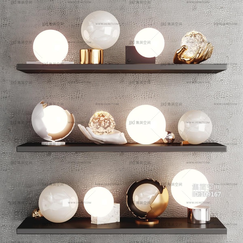 现代球形手掌台灯组合 3d模型下载 [模型ID:109167]