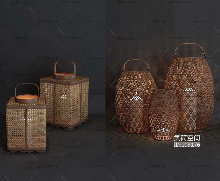 新中式日式民宿藤编烛台灯 3d模型下载 [模型ID:109176]