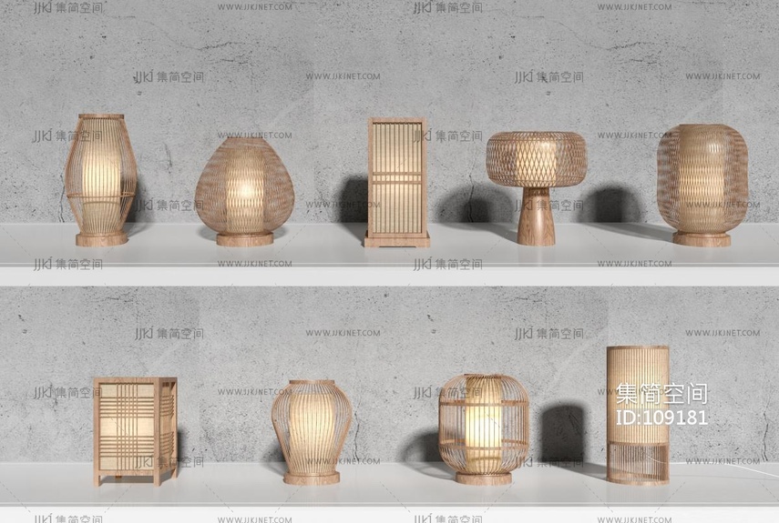 新中式日式韩式民宿木纹台灯 3d模型下载 [模型ID:109181]