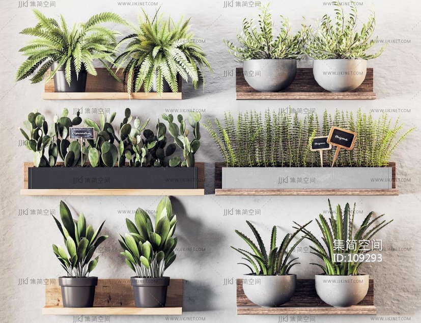 现代挂墙植物 3d模型下载 [模型ID:109293]