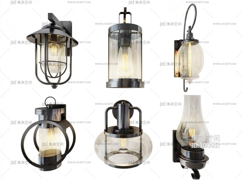 工业风美式铁艺壁灯组合 3d模型下载 [模型ID:109296]