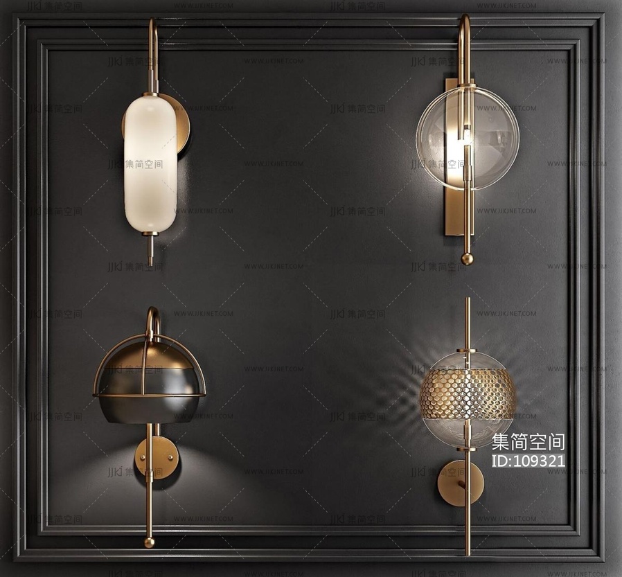 欧式古典金属玻璃壁灯3D模型3d模型下载