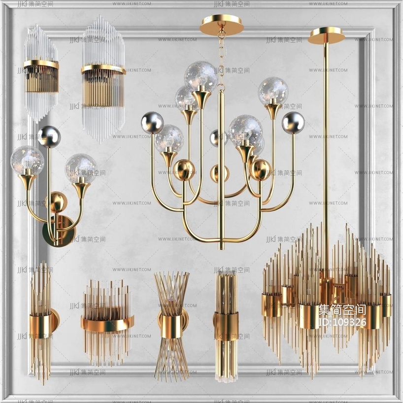 现代轻奢壁灯吊灯组合 3d模型下载 [模型ID:109326]