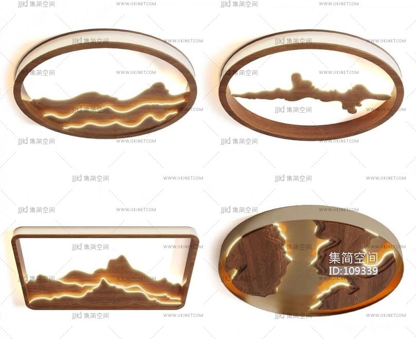 新中式吸顶灯组合 3d模型下载 [模型ID:109339]