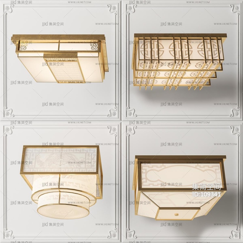 新中式吸顶灯组合 3d模型下载 [模型ID:109341]