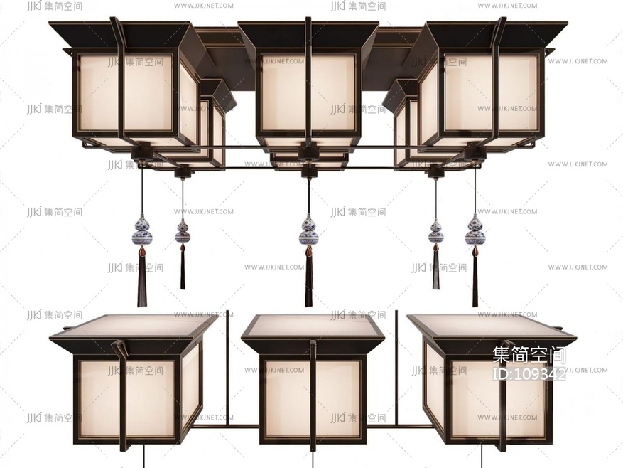新中式吸顶灯 3d模型下载 [模型ID:109342]