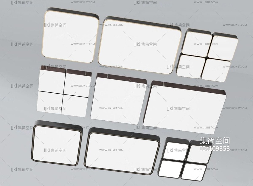现代金属方形吸顶灯 3d模型下载 [模型ID:109353]