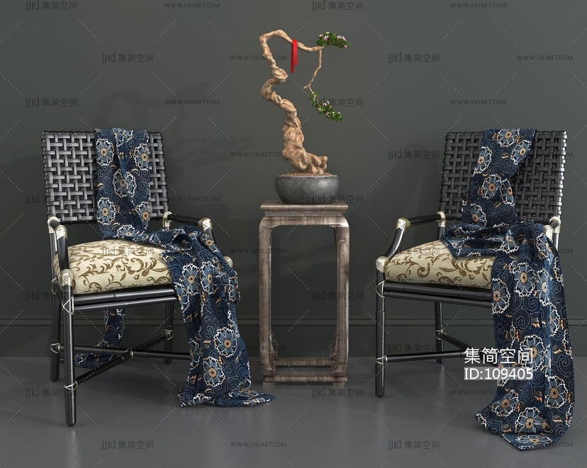 新中式黑色编织椅子花架 3d模型下载 [模型ID:109405]