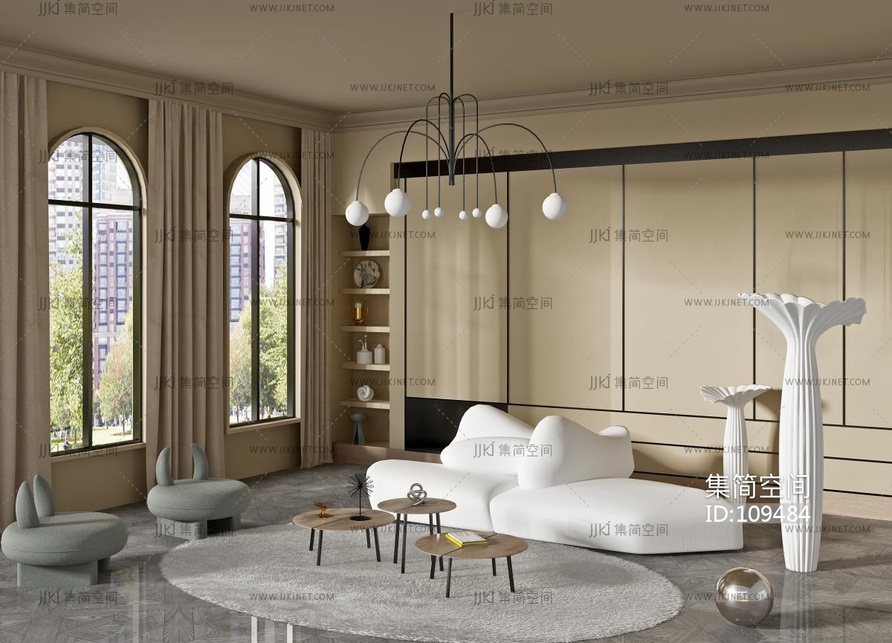 现代客厅,异形靠背多人沙发茶几组合, 3d模型下载 [模型ID:109484]